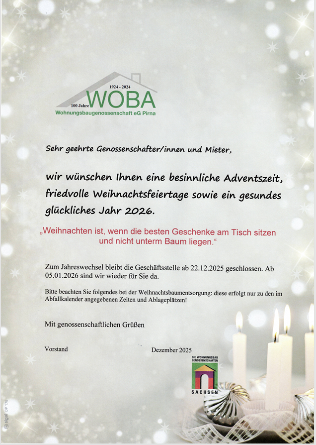 ...mit WOBA-Pirna wohnen, wo andere Urlaub machen.